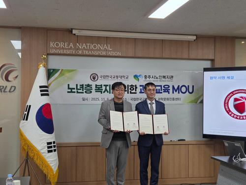 Korea National University of Transportation announced on November 6th that it signed a Memorandum of Understanding (MOU) with the Chungju City Senior Welfare Center to "Promote Science Education and Welfare for the Elderly and Strengthen Regional Cooperation."
