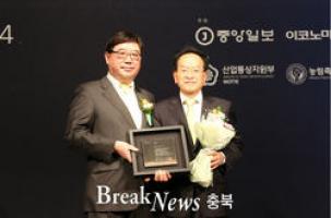 | ▲ 임각수 괴산군수는 4일 유기농업육성 발전에 기여한 공로를 인정받아 최고경영자 공적상을 수상했다. © 임창용 기자 |