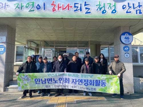 매 분기마다 실시 하는 자연정화활동은 바쁜 일상생활에도 불구하고 안남면 12개 마을에서 노인회장 23명이 자발적으로 참여하여 지역의 리더로서 역할을 다하였다.